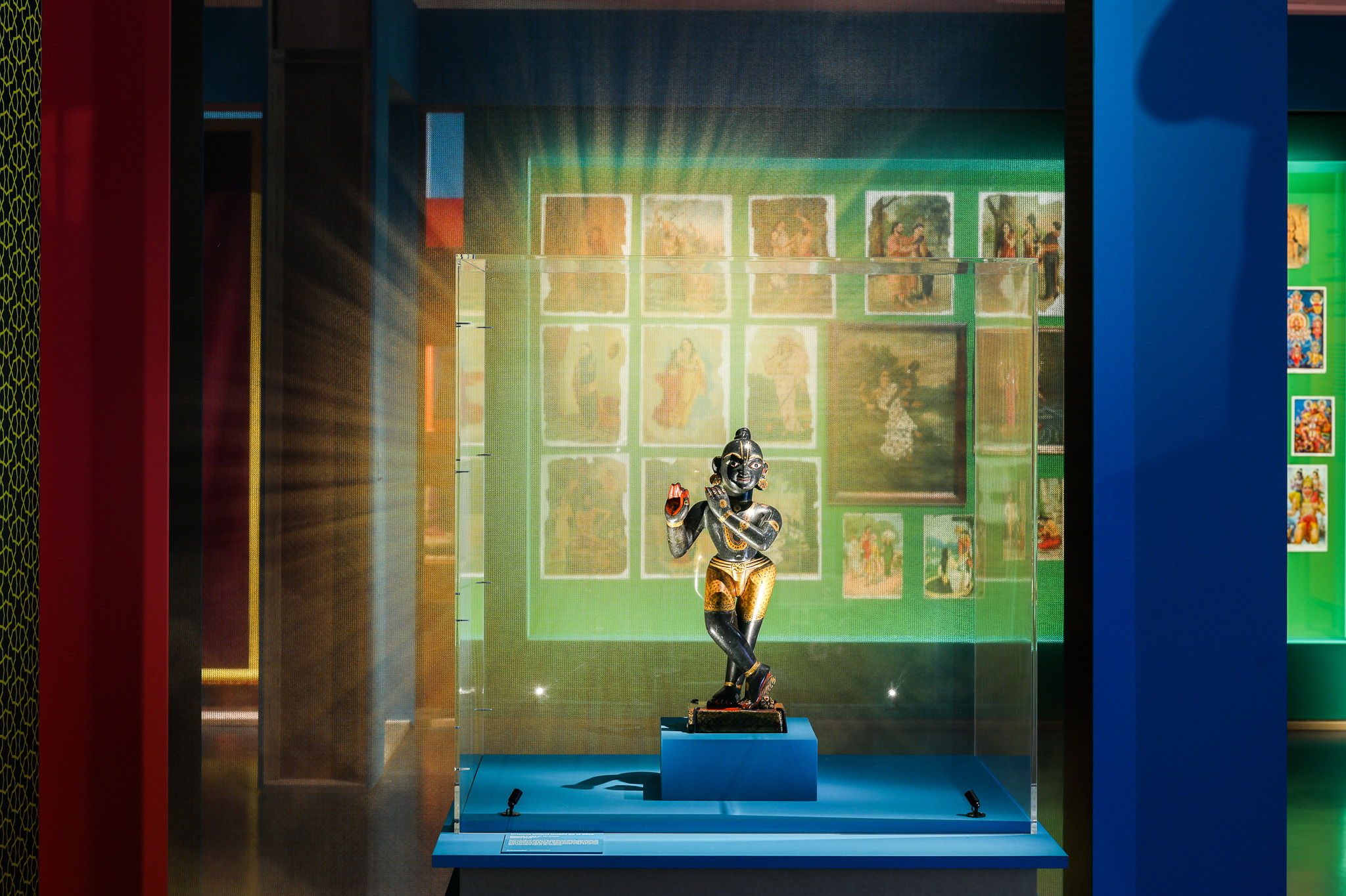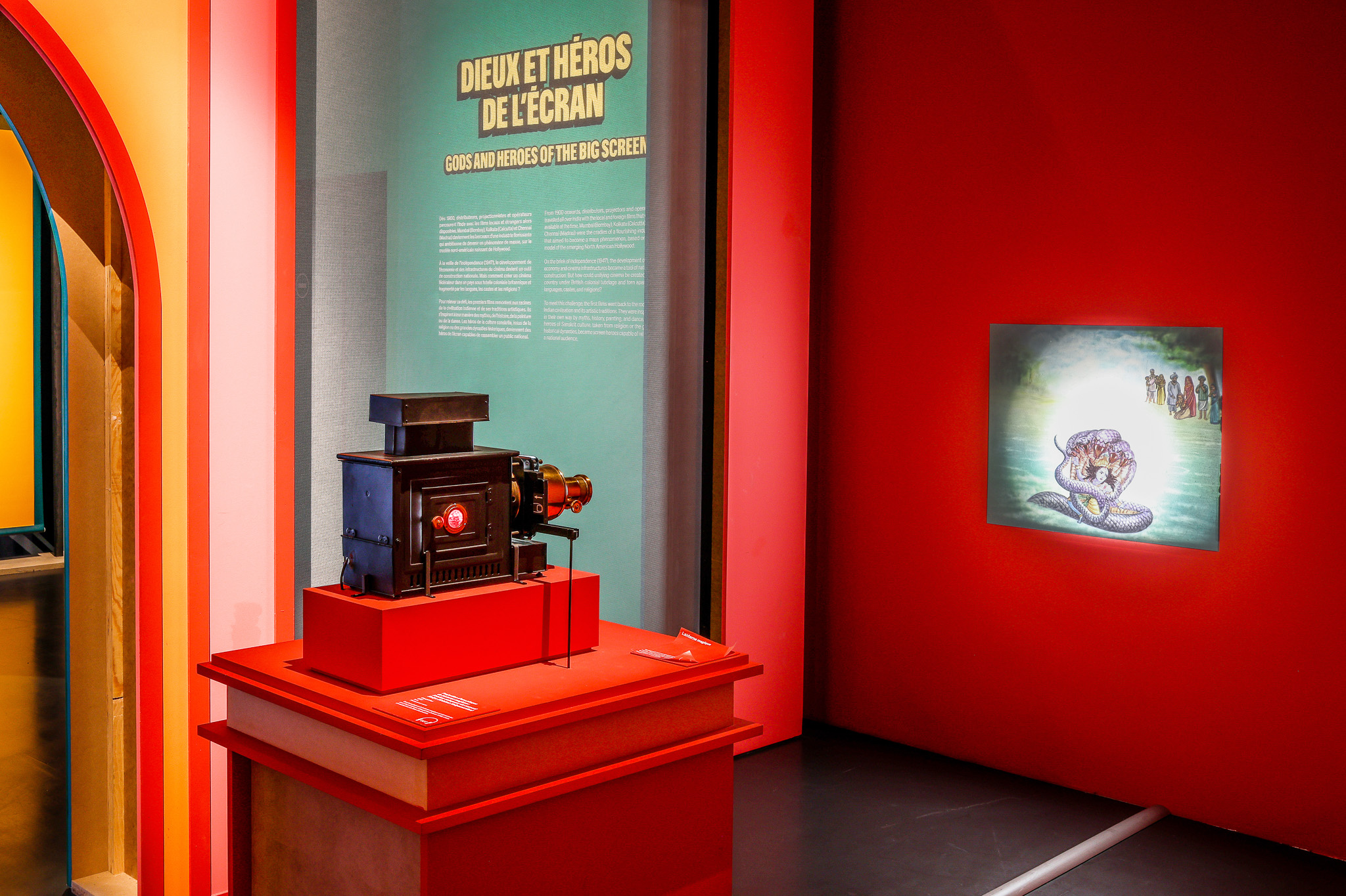 Présentant des extraits d'une quarantaine de films et plus de 80 oeuvres d'art, Bollywood Superstars se penche sur les origines diverses du cinéma indien. Du traditionnel théâtre d'ombre du 19ème siècle aux dieux de l'écran du 21ème siècle, en passant par le cinéma muet, l'exposition explore la richesse de la tradition indienne de fabrication des images, l'influence qu'exercent sur elle des arts populaires tels que le conte, la danse et le théâtre, ainsi que les relations étroites qu'elle entretient avec la mythologie et la religion.