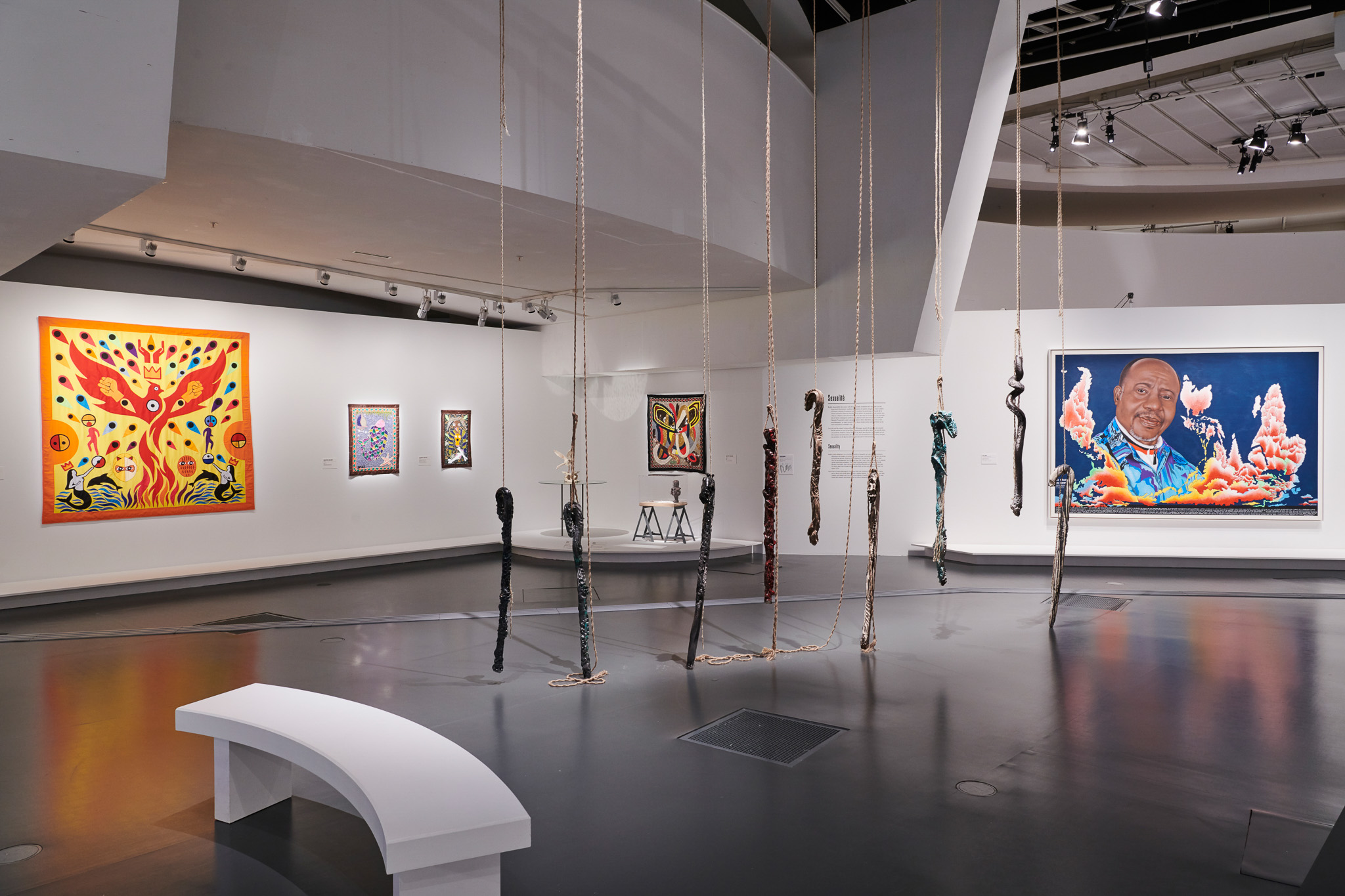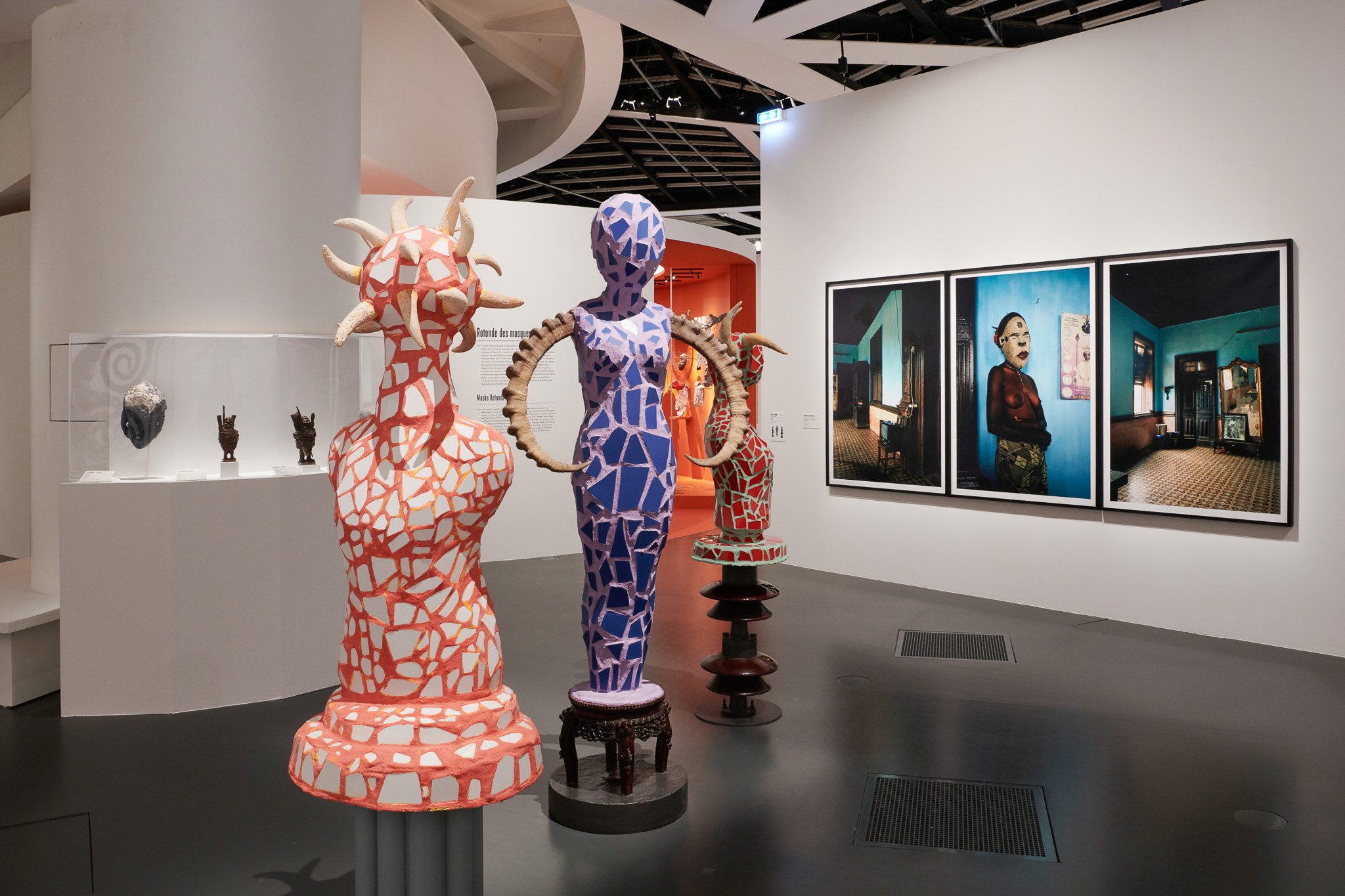 Au fil d'un parcours explorant la création contemporaine sous toutes ses formes, l'exposition examine les relations qu'entretiennent la création actuelle et les arts africains anciens. Quelle mémoire commune est-elle au travail dans les ateliers d'Annette Messager, ORLAN, Jean-Michel Basquiat, Chéri Samba, Alun Be, Théo Mercier ou encore Emo de Medeiros ? Que sont devenues les références africaines désormais classiques dans le monde de la consommation visuelle mondialisée ? Comment ont-elles repris vie ? Quels sens politiques ou sociaux peuvent-elles porter quand elles sont réactivées par Myriam Mihindou, Kader Attia, Romuald Hazoumè ou Pascale Marthine Tayou, qui ont créé pour Ex Africa des oeuvres nouvelles ?