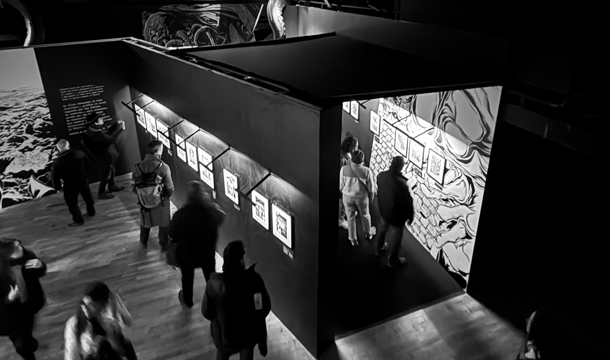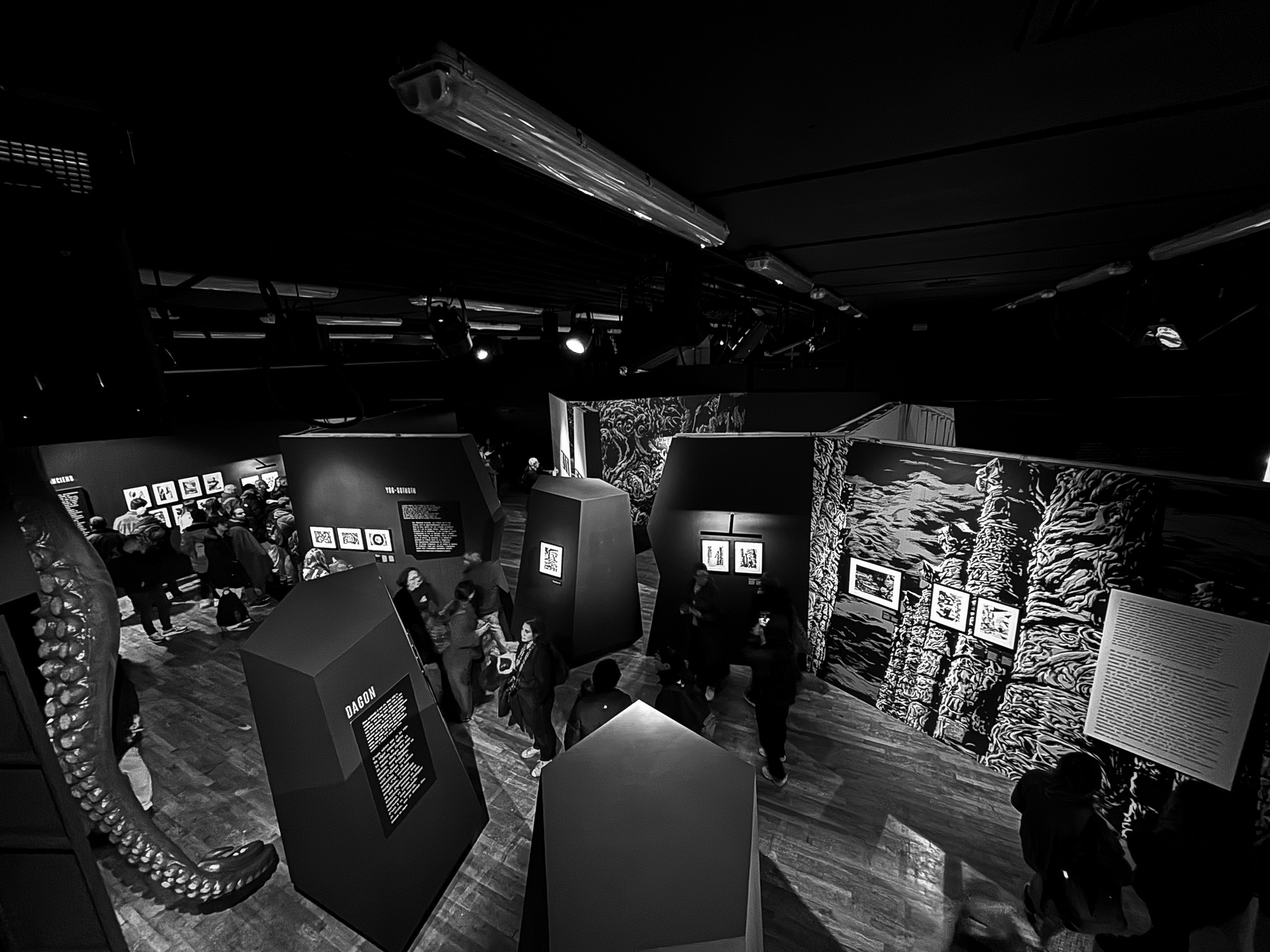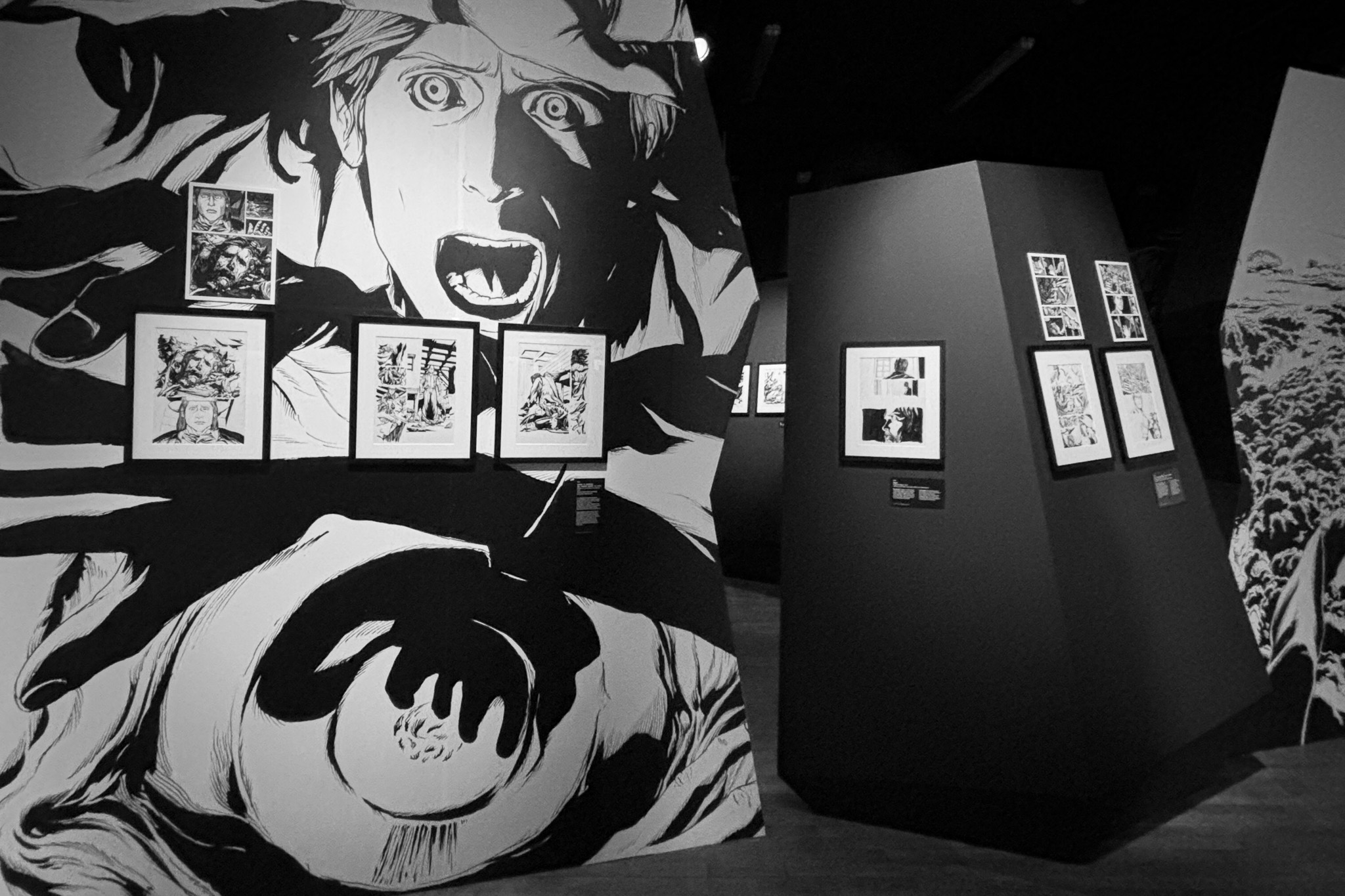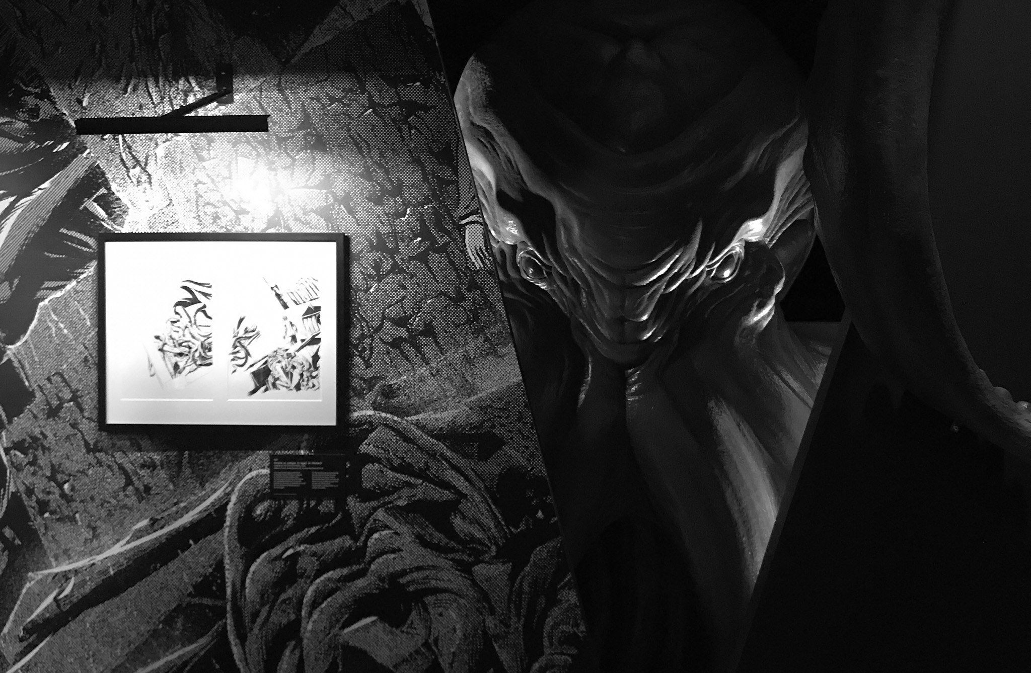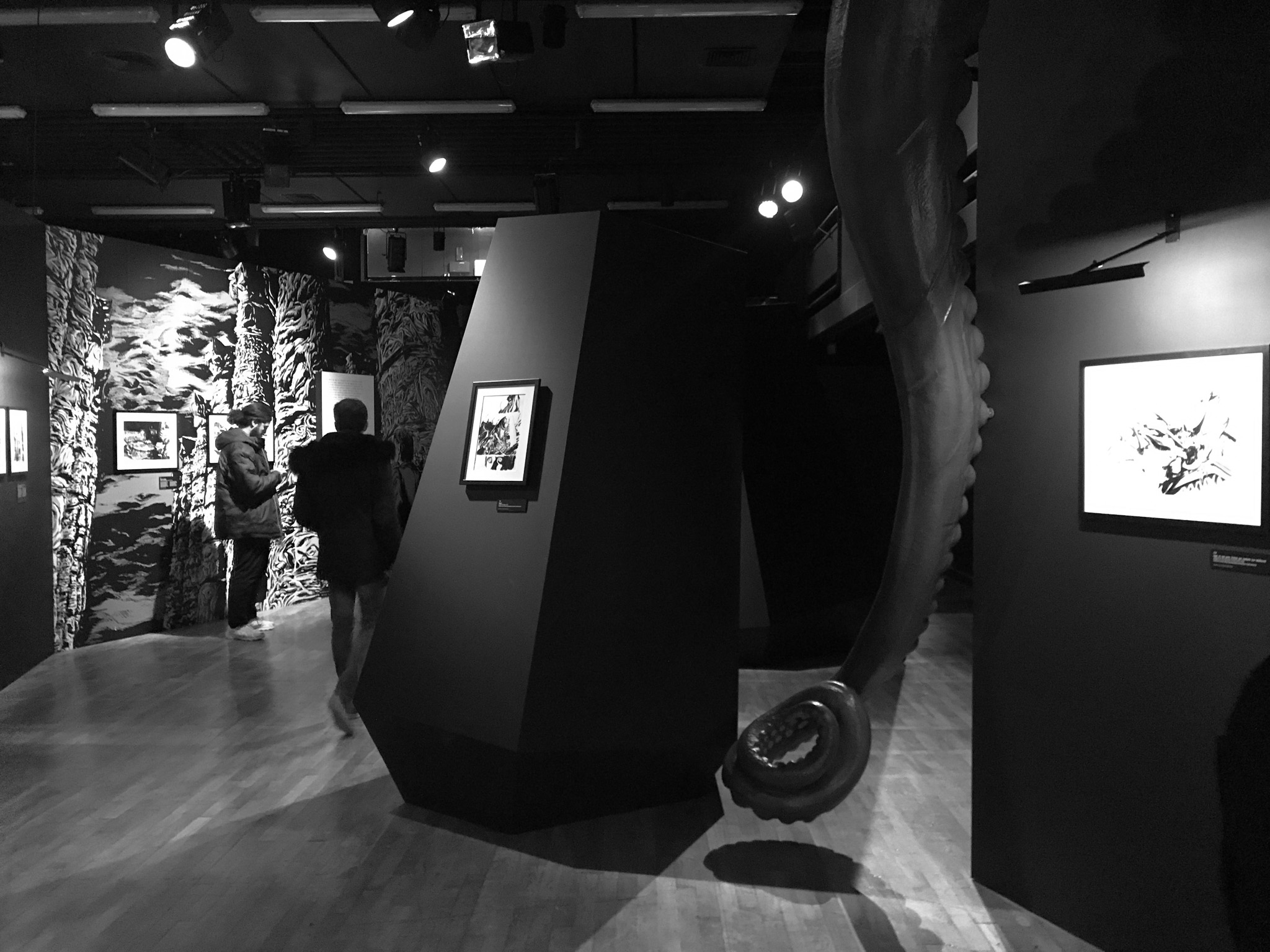 À travers de plus d’une centaine de dessins originaux présentés dans une scénographie cyclopéenne et accompagnés d’extraits du texte séminal, les visiteur·se·s pourront découvrir les méthodes de travail de Gou Tanabe (mêlant dessin traditionnel sur papier et outil numérique), ainsi que ses interprétations des grandes figures des récits de l’auteur fantastique le plus influent du XXe siècle. La sélection de planches présentées s’étendra de la première incursion du mangaka dans l’univers de H.P. Lovecraft avec The Outsider en 2004, jusqu’au cycle consacré au personnage de Randolph Carter qu’il a récemment entamé. Architectures inquiétantes, figures dérangeantes et atmosphères étouffantes seront au rendez-vous.