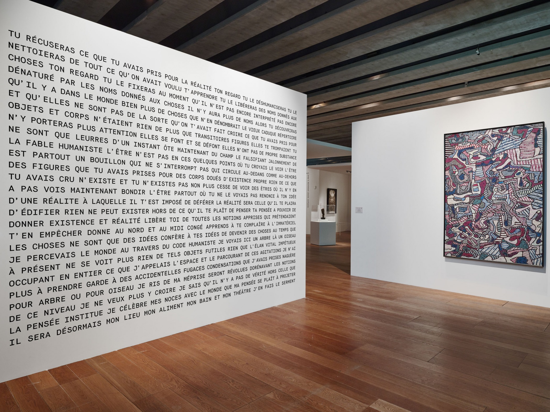 « En suivant le cheminement de l'oeuvre de Jean Dubuffet sous l'angle de l'histoire culturelle et de l'anthropologie, l'exposition retrace la redistribution des valeurs qui s'est opérée au lendemain de la Seconde Guerre mondiale et qui fondent la culture contemporaine. » | Paris Art