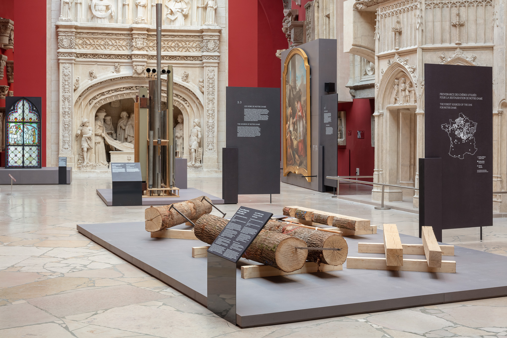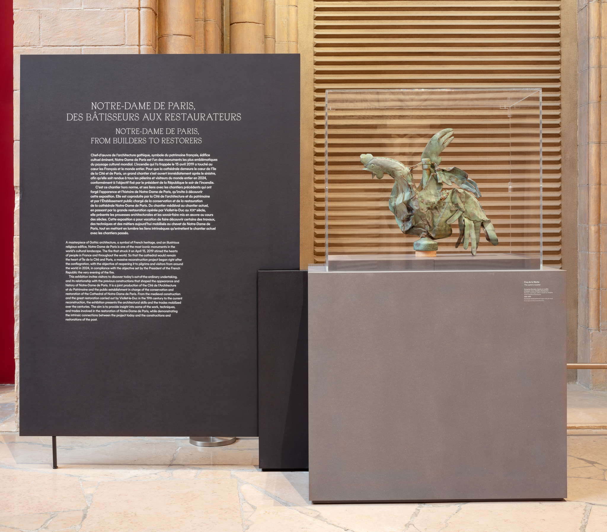 Fruit d’une coproduction entre l’établissement public chargé de la conservation et de la restauration de la cathédrale Notre-Dame de Paris, maître d’ouvrage du chantier, et la Cité de l’architecture et du patrimoine, cette exposition offre un lien privilégié avec l’édifice pour le moment inaccessible au public. Elle permet de découvrir le savoir-faire des compagnons et artisans d’art qui œuvrent à rendre la cathédrale au culte et à la visite en 2024. Elle est enfin l’occasion de mettre en lumière les permanences et les évolutions des techniques utilisées sur des chantiers patrimoniaux.