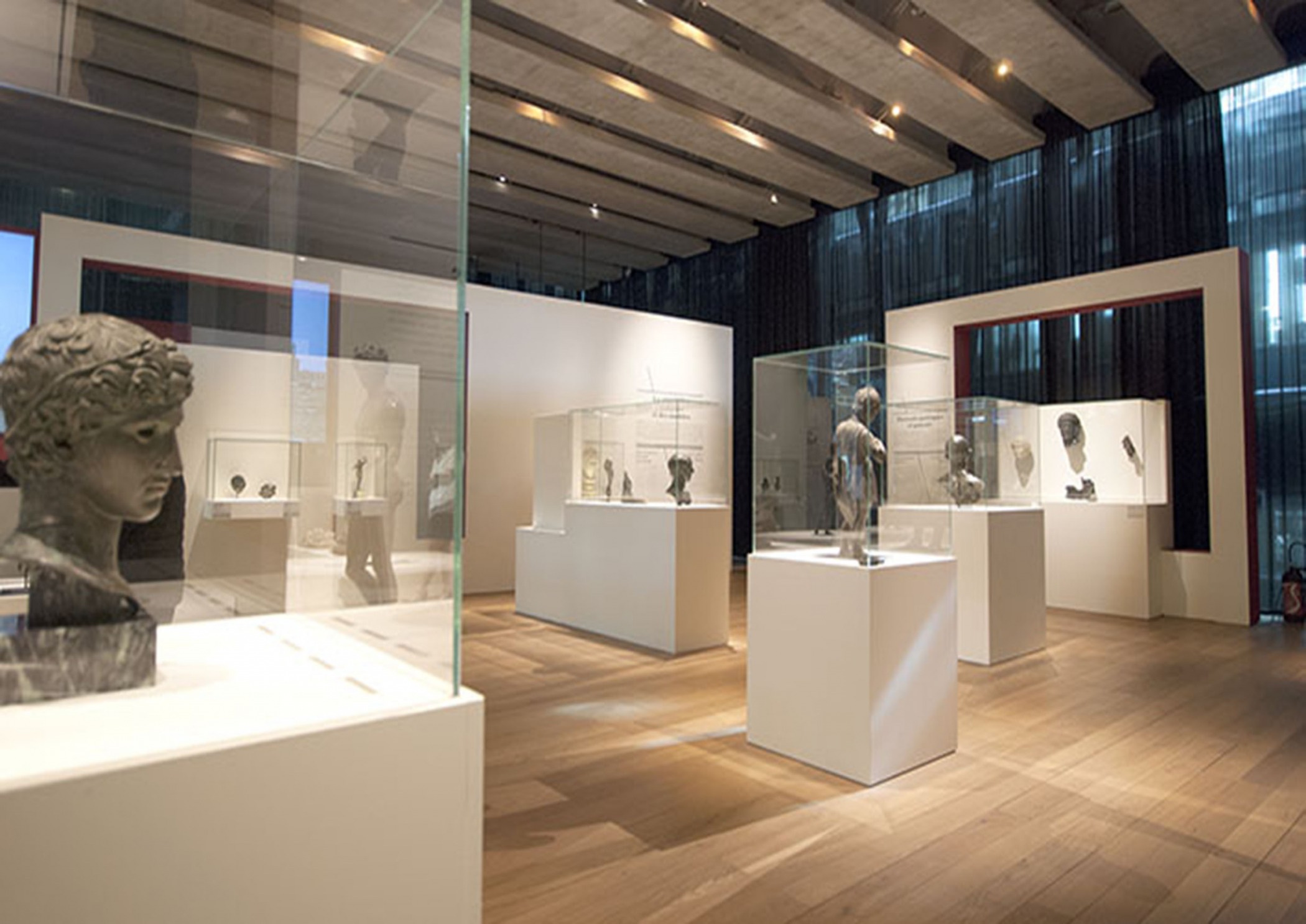 L'ensemble des bronzes en provenance de Volubilis est mis en espace en regard d'oeuvres issues d'autres régions méditerranéennes. Parmi celles-ci, nous avons pu bénéficier des précieuses collections du Louvre, du cabinet des Monnaies, Médailles et Antiques de la Bibliothèque nationale de France, du musée de l'Ephèbe d'Agde et du musée départemental Arles antique. Elles illustrent magistralement le langage commun des élites méditerranéennes de l'Antiquité.